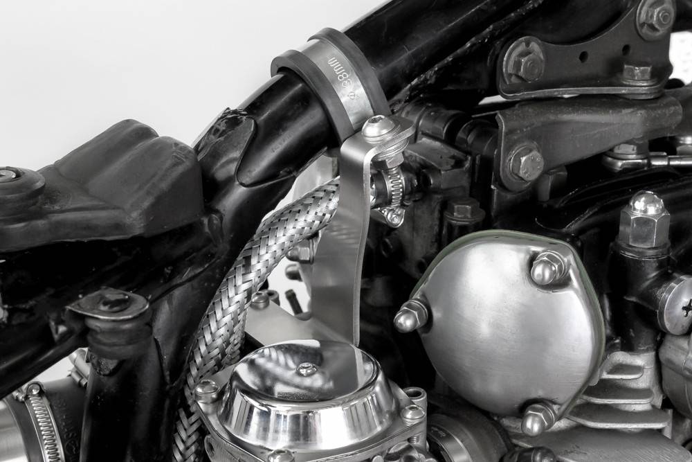Ce support pour carburateur est parfait pour stabiliser l'intégralité de votre système d'admission lorsque vous installez des filtres à air ouverts. Son design minimaliste le rend facile à harmoniser avec le style de votre moto.