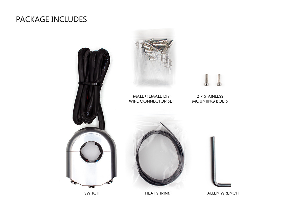High end handlebar mount switch with a combination of On/Off & Momentary switch functions. This switch can be mounted either on the left or right side of your handlebars simply by flipping it. Made from CNC Machined T6061 Billet Aluminum with stunning lines and a faultless finish.