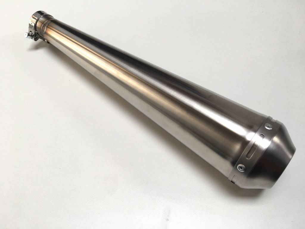 Handmade Stainless Muffler + Killer LONG. These Mufflers are made in small amounts at our Italian partner. The length is approx 520 mm and has a connection diameter of 44 mm.