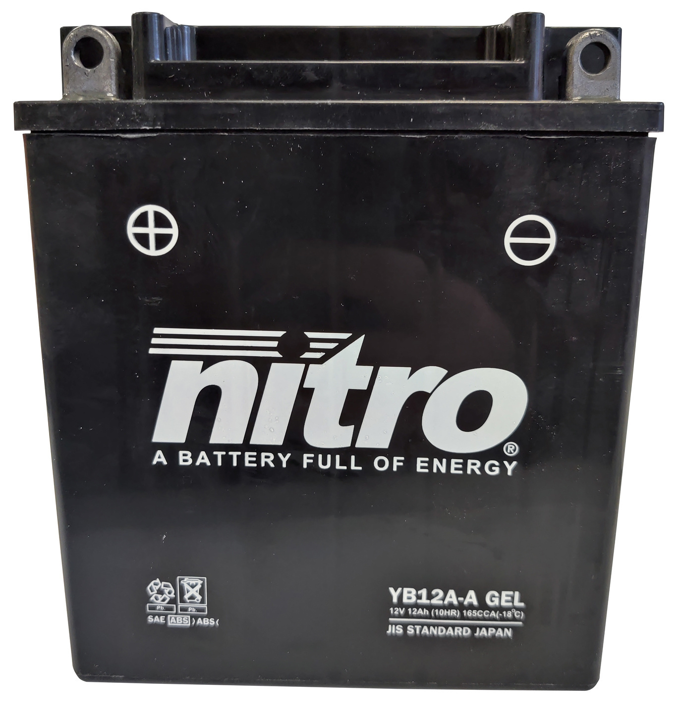 L'ultima evoluzione nelle batterie sono le batterie Valve Regulated & Wet Charged. Grazie a una tecnologia molto innovativa, queste batterie sigillate hanno una maggiore capacità di avviamento per un volume di batteria più piccolo. Fondamentalmente questi tipi utilizzano la stessa tecnologia di ricombinazione del gas con valvole di sfiato delle batterie Maintenance Free, ma la differenza più importante è che queste batterie sono fornite sigillate e già riempite di acido. Grazie alla tecnologia AGM GEL (Absorbent Glass Matt), queste batterie sono progettate per l'uso in qualsiasi posizione. Modello YB12A-A GEL.