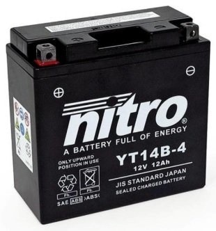 L'ultima evoluzione nelle batterie sono le batterie Valve Regulated & Wet Charged. Grazie a una tecnologia molto innovativa, queste batterie sigillate hanno una maggiore capacità di avviamento per un volume di batteria più piccolo. Fondamentalmente questi tipi utilizzano la stessa tecnologia di ricombinazione del gas con valvole di sfiato delle batterie Maintenance Free, ma la differenza più importante è che queste batterie sono fornite sigillate e già riempite di acido. Grazie alla tecnologia AGM GEL (Absorbent Glass Matt), queste batterie sono progettate per l'uso in qualsiasi posizione. Modello YT14B-4.