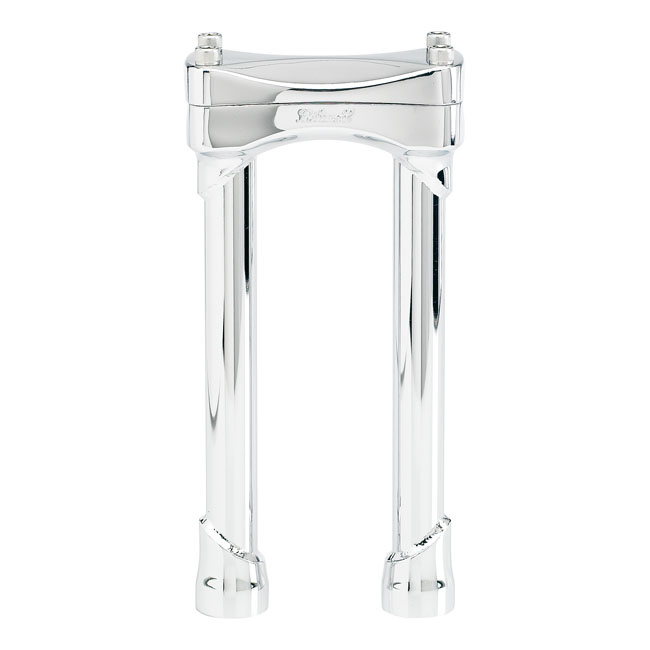 • I tubi montanti sono realizzati con tubi in cromo 4130 spessi 3 mm, senza saldatura, saldati a TIG con fori di montaggio filettati 1/2-13 che accettano bulloni montanti standard. Spaziatura di 3-1/2" (89 mm) per adattarsi alla maggior parte delle piastre superiori HD.