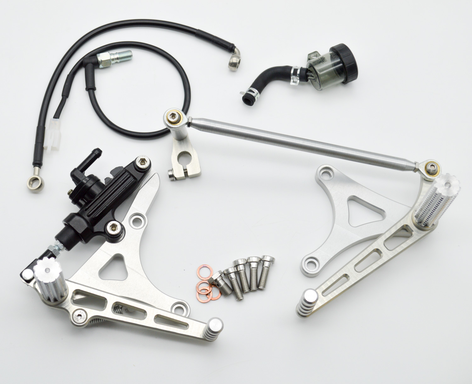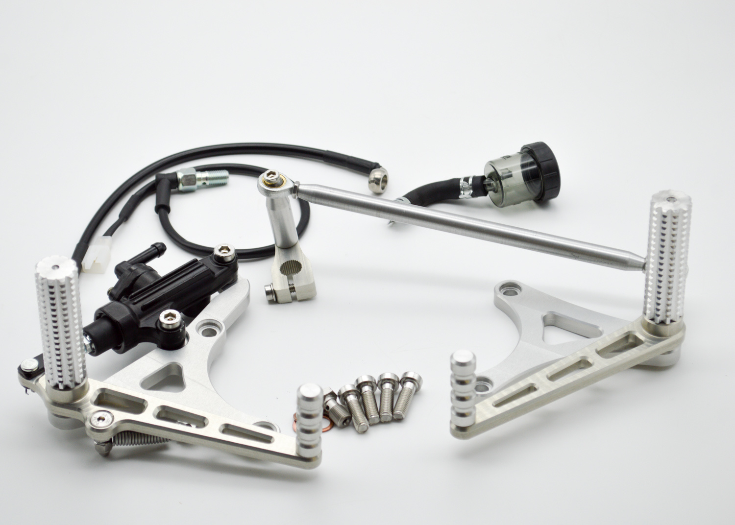 - CNC milled brake and gear lever with a sliding sleeve.
