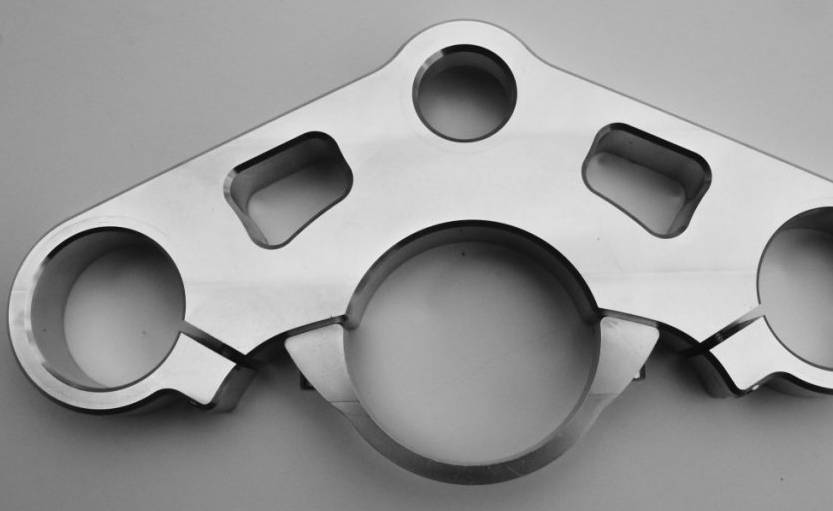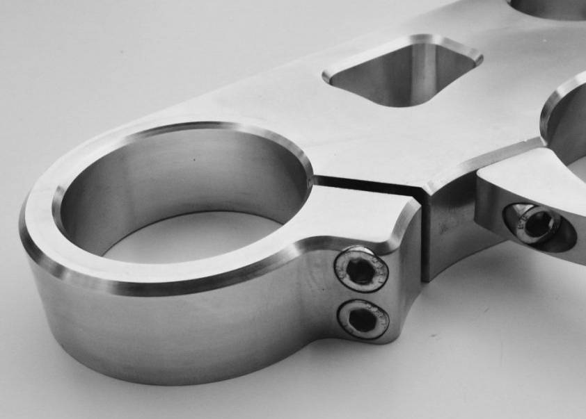 This triple clamp for BMW K100 RS, K100 RT 1982 - 1991 is really cool and CNC-milled. On top of that, it even has a 64 mm gap for a speedometer.