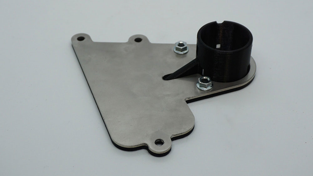 Questa staffa è stata realizzata per montare il blocchetto di accensione originale delle K75 e K100 sul radiatore. La parte posteriore è realizzata in acciaio inox spazzolato per creare un piacevole contrasto con la parte anteriore nera.