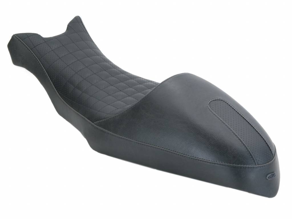 The RSD Café R nineT seat takes the simple line of a café tail and blends it with the tank and frame rails creating a clean, comfortable and custom detailed seat. Features a deep seating area for a secure riding experience. Available in the Traction design with gripper material in the rider seated area or the Check It design with perforated square detailing.