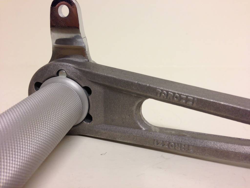 Check out this beautiful constructed Universal Italian Tarozzi Rear Set. This specific set is a non-foldable set but still steals the show in practicality and appearance. A must have on your Cafe Racer.