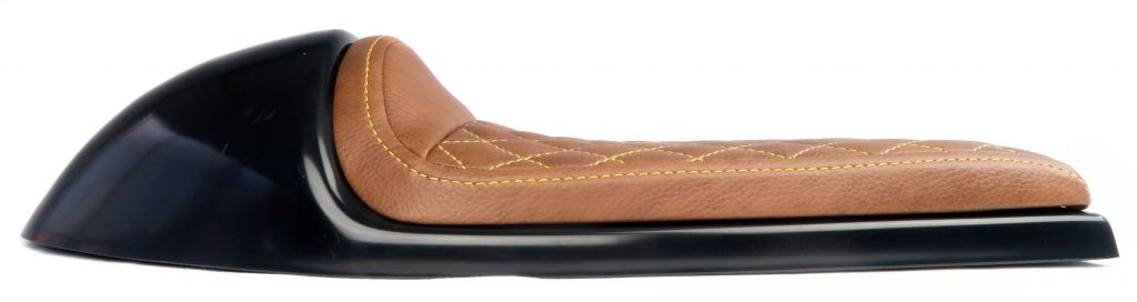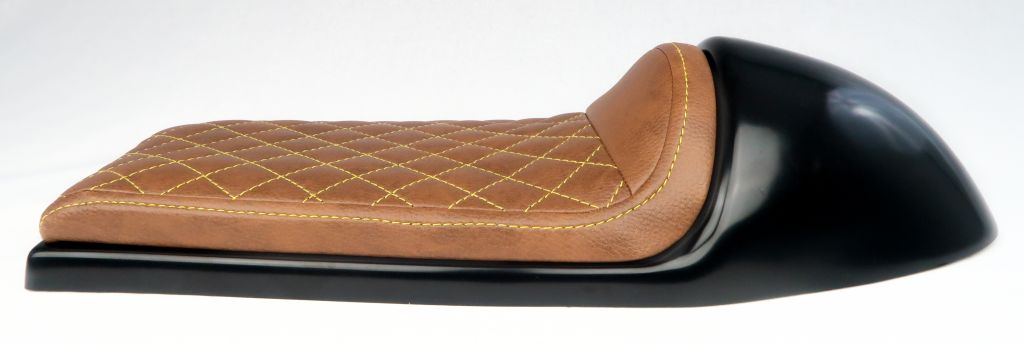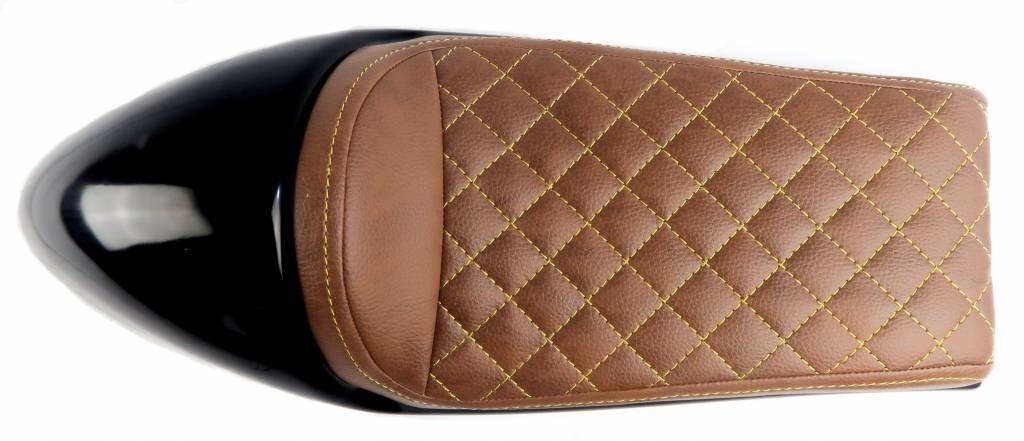 Cafe Racer Seat Chocolat Diamond Stitch Brown / Yellow Type 26. This ABS-moulded seat is of outstanding quality. The upholstery part can be easily be removed from the seat, which makes it a breeze to mount!