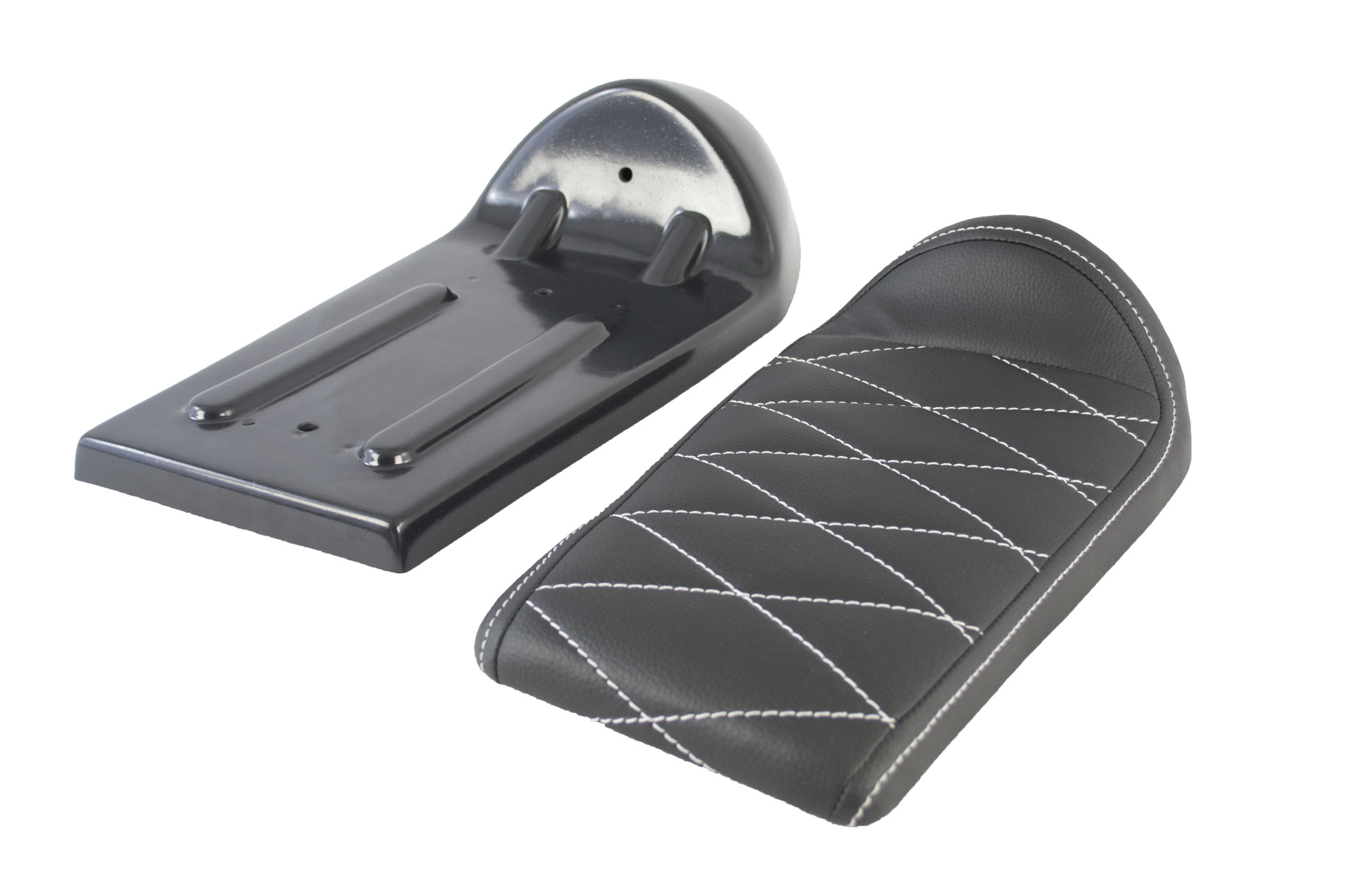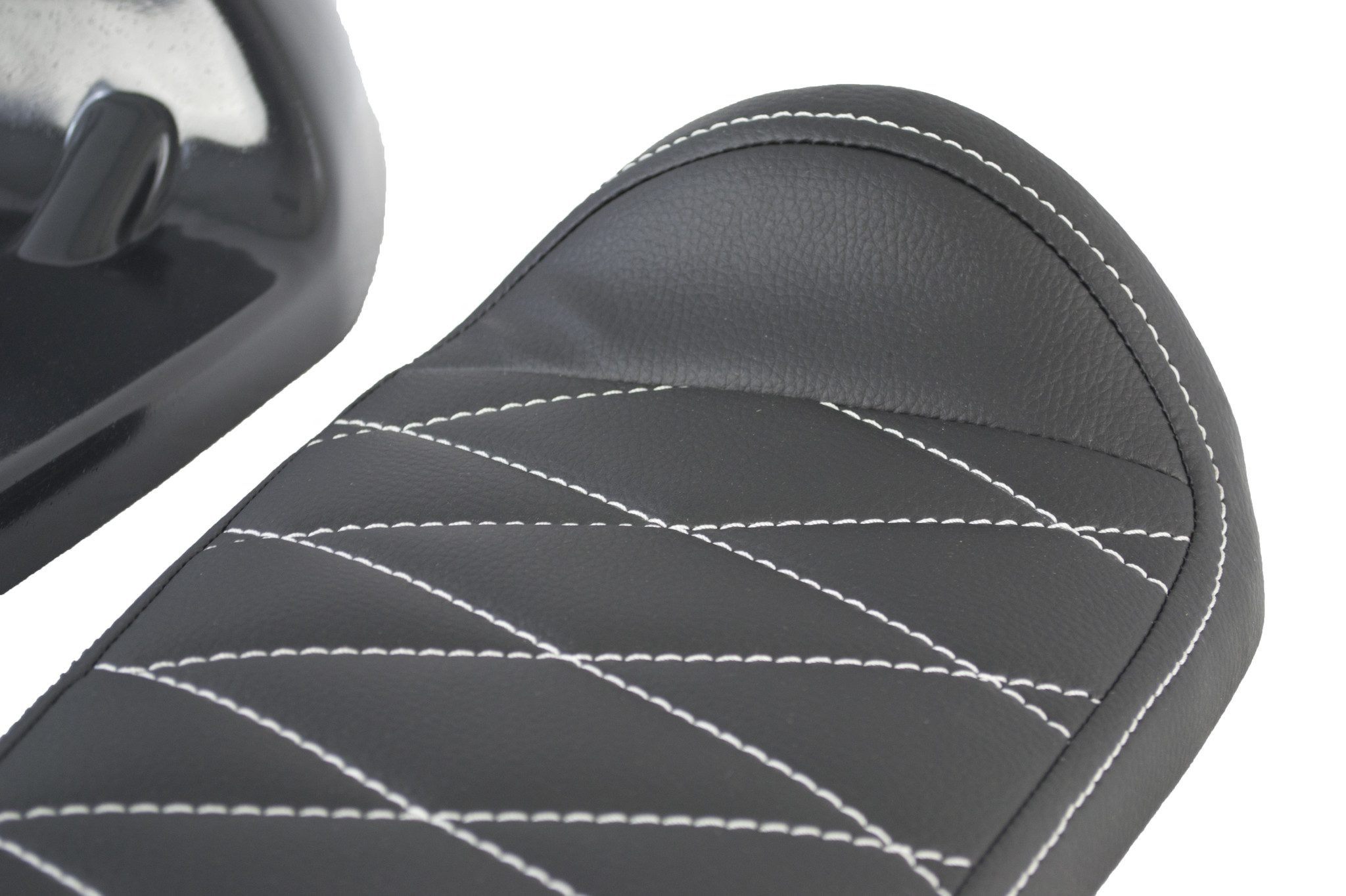 Cafe Racer Seat Diamond Stitch Black Type 27. This ABS moulded seat is of outstanding quality. The upholstery part can be easily be removed from the seat, which makes it a breeze to mount!