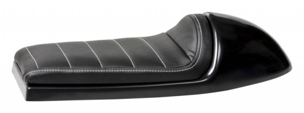 Cafe Racer Seat Tuck N' Roll Stitch Black type 35. This ABS seat is of outstanding quality. The upholstery part can be easily be removed from the seat, which makes it a breeze to mount and to ride!