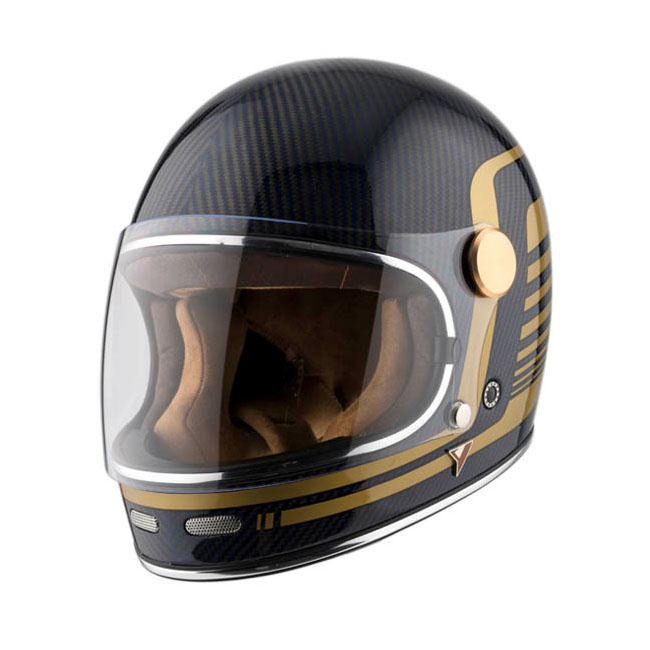 The Roadster helmet by By City is classic in style, inspired by 70's designs, with a large field of vision and very comfortable. Carbon Fiber shell (ultralight) helmet with multi density padding, removable and washable interior. The helmet is ECE approved; ECE/UN R.22.00