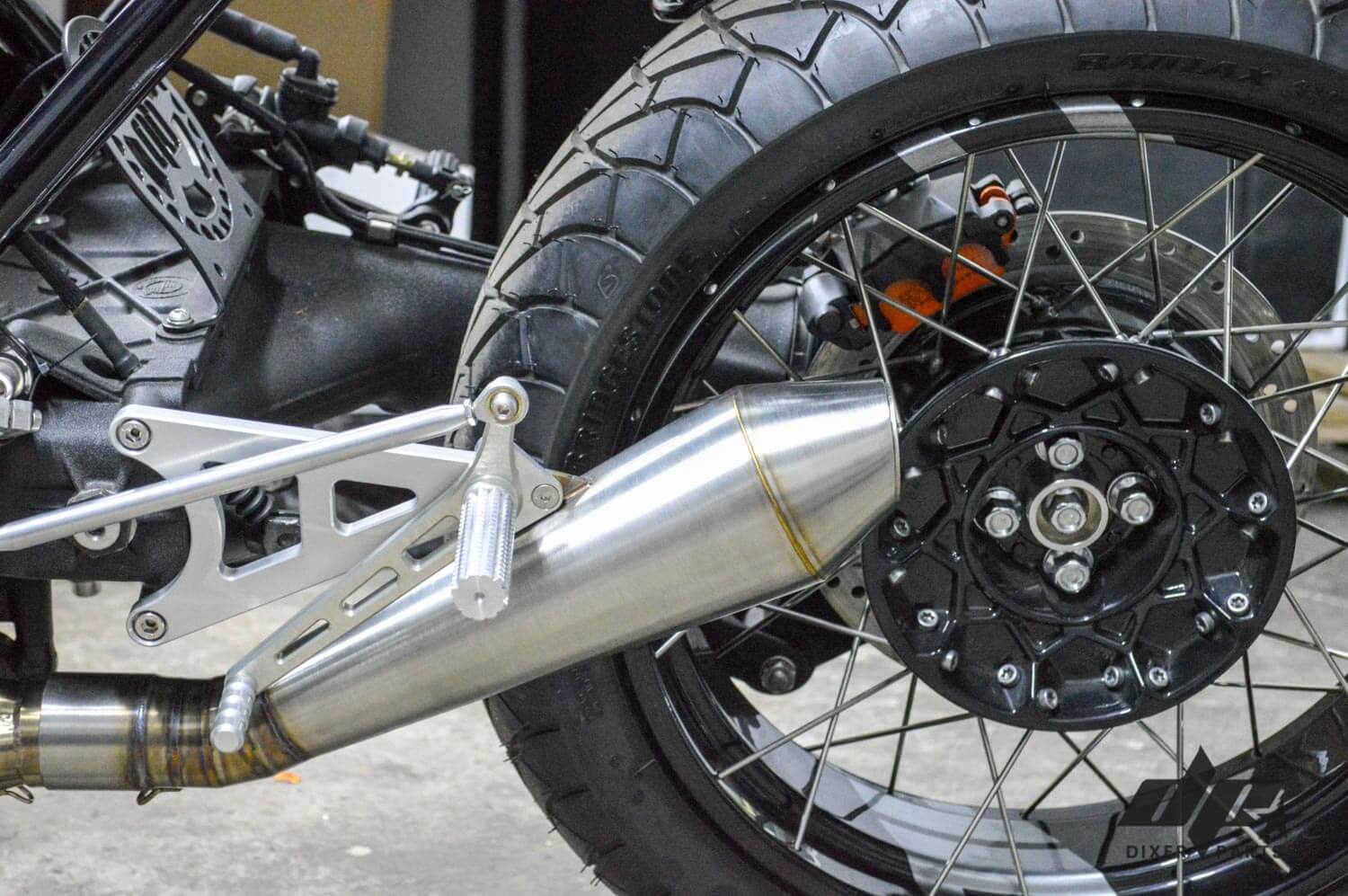 La moto ha un aspetto davvero attraente grazie alla marmitta in acciaio inox. Grazie all'angolo adattato alla linea del serbatoio del carburante, si presenta in modo molto gradevole.