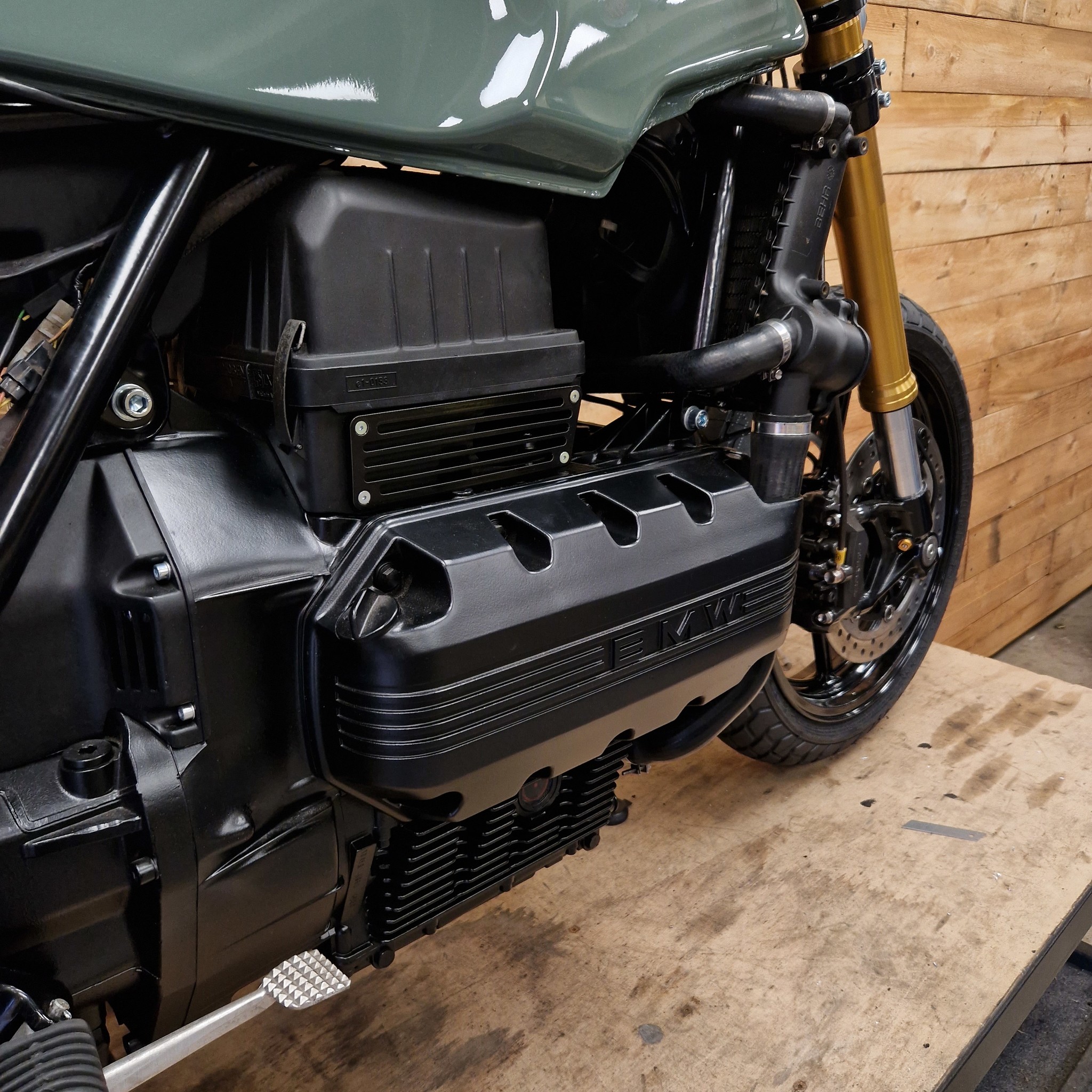 Aspirazione airbox personalizzata con motivo esagonale o linee rette per la tua build BMW K! L'airbox sostituirà il tubo di aspirazione che conferisce alla moto un aspetto molto più pulito. L'aspirazione è realizzata in alluminio e verniciata a polvere. Il set verrà consegnato completo di tutti i dispositivi di fissaggio, non è necessario saldare supporti aggiuntivi! La copertura del radiatore è disponibile in 2 tipi: