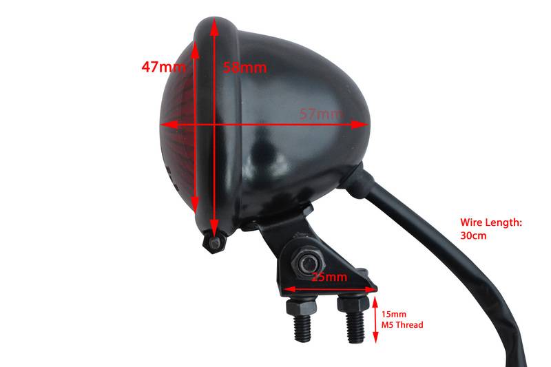 Fanale posteriore a LED Cafe Racer BBates Style con alloggiamento in metallo nero, lente rossa, staffa regolabile e marchio di omologazione E