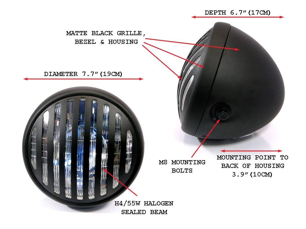 7 " Steampunk Cafe Racer Matte Black Headlight