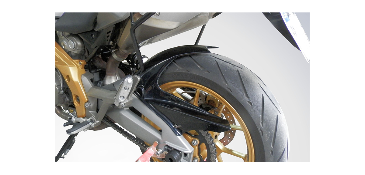Rear Fender With chain Guard for Aprilia Shiver 750. It is designed for the Aprilia Shiver 750 and has a built-in chain guard. Protects the rear shock absorber from mud and also protects the driver's and passenger's feet from water.