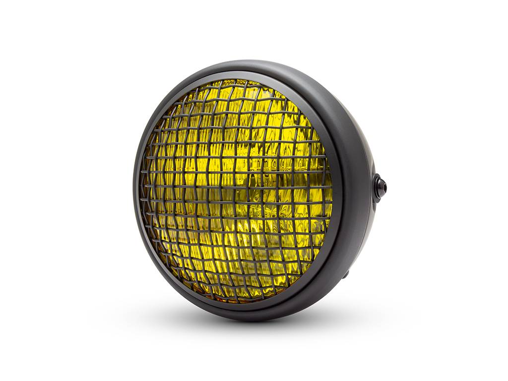 7 " Classic Matte Black Mesh Headlight - Yellow Lens