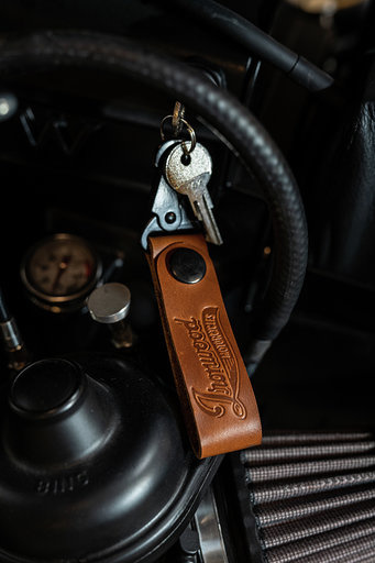This key ring is made in Vintage brown, made of real leather and has a strong buckle.