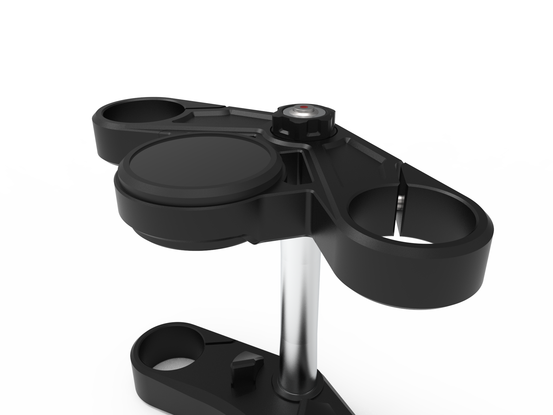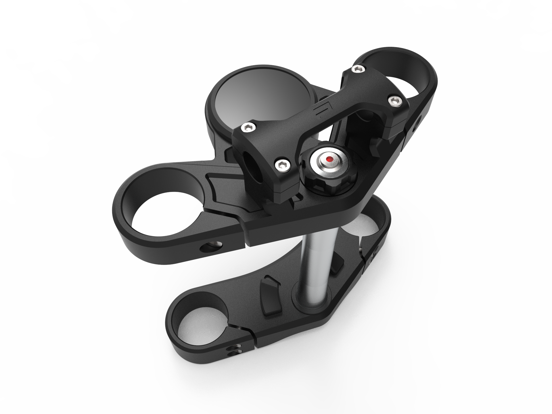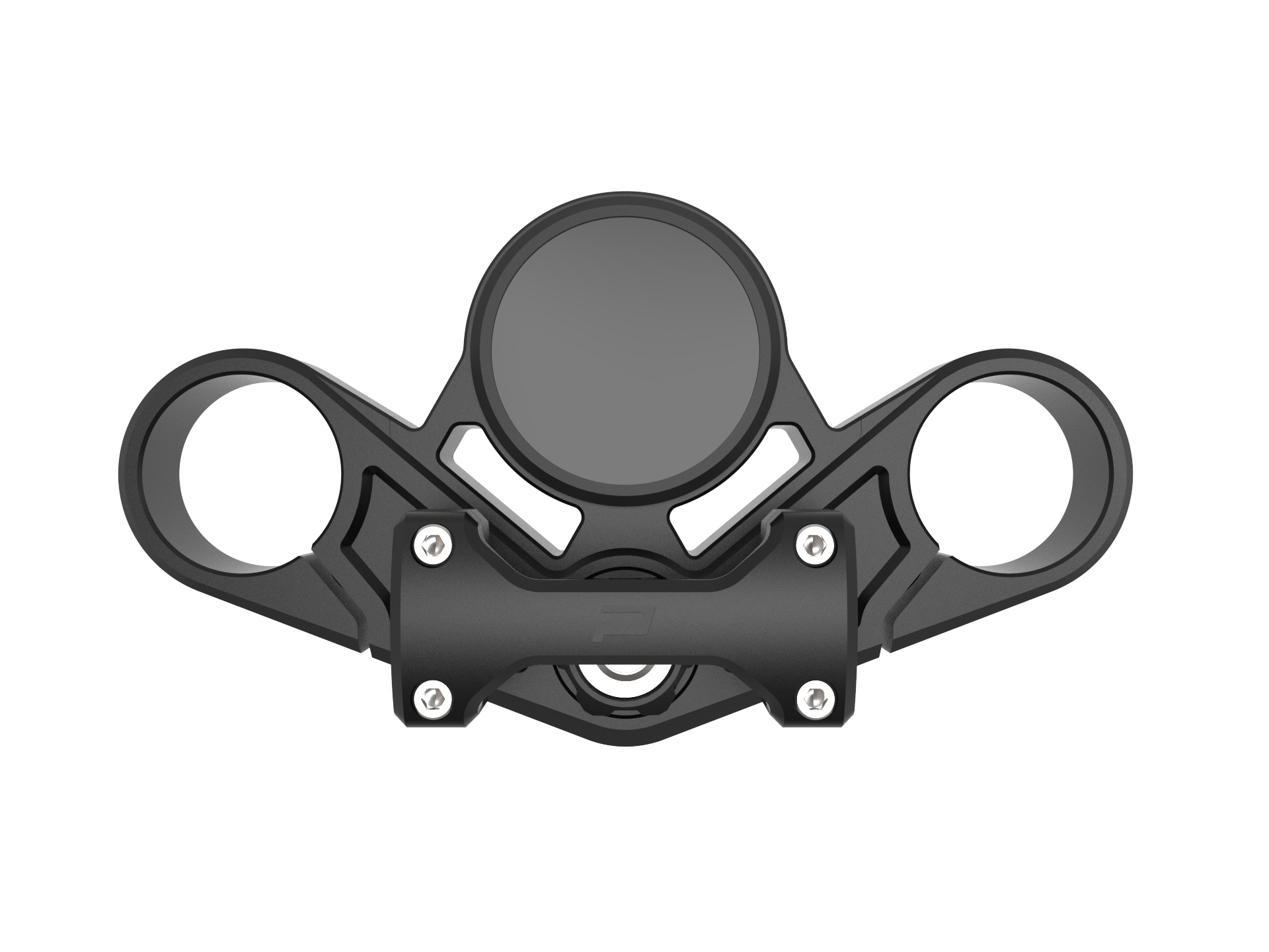 • Giogo superiore in alluminio anodizzato nero pronto per qualsiasi integrazione contachilometri da 80 mm (Motogadget Chronoclassic, Daytona Velona 80 ecc.) con bullone di fissaggio cieco in acciaio inossidabile