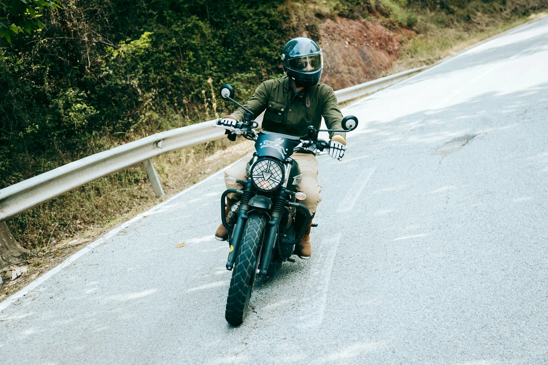 La giacca FUEL Division 2 unisce lo stile vintage degli anni Cinquanta alla moderna tecnologia di guida, realizzata in resistente tela militare con rinforzi in pelle scamosciata e fodera impermeabile. Con un'armatura CE di livello 2, una fodera termica rimovibile e una ventilazione intelligente, è costruita per il comfort, la protezione e l'avventura tutto l'anno.