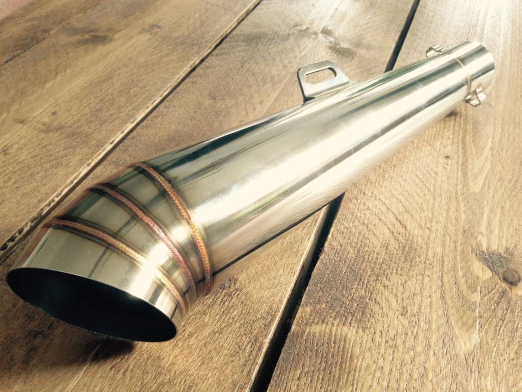 Handmade Classic GP silencer plus decibel killer. This beautiful silencer is made of stainless steel and comes directly with a decibel killer. The silencer can be placed on 2 sides. The connection diameter is 51mm. The total length of the silencer is 400mm.