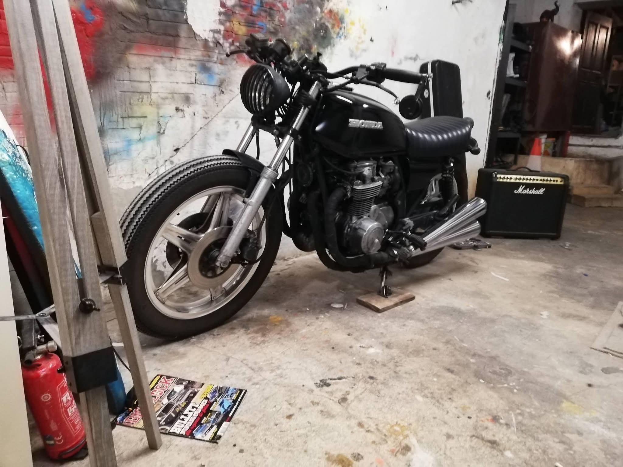 La moto è una Honda CB650 del 1981, personalizzata in stile brat/cafe racer. Non presenta modifiche sostanziali, quindi non ci sono problemi legali! È dotata di alcuni componenti di pregio, come un sistema di scarico quadruplo Sito simile a quello della CB750 Four, ammortizzatori Hagon e pneumatici Firestone Deluxe. Includo anche un set di ricambi originali: scarico, indicatori di direzione, cupolino, ecc.