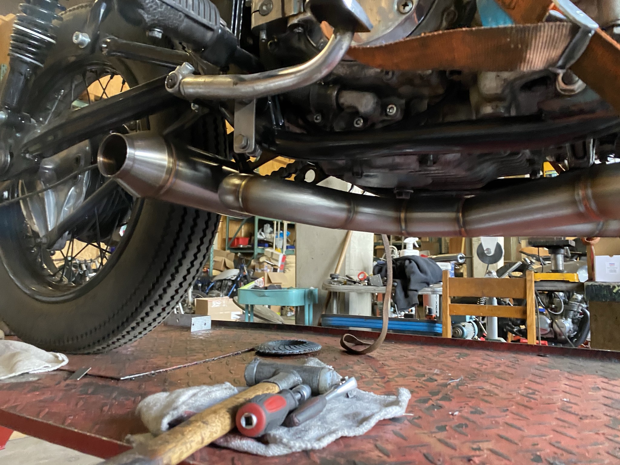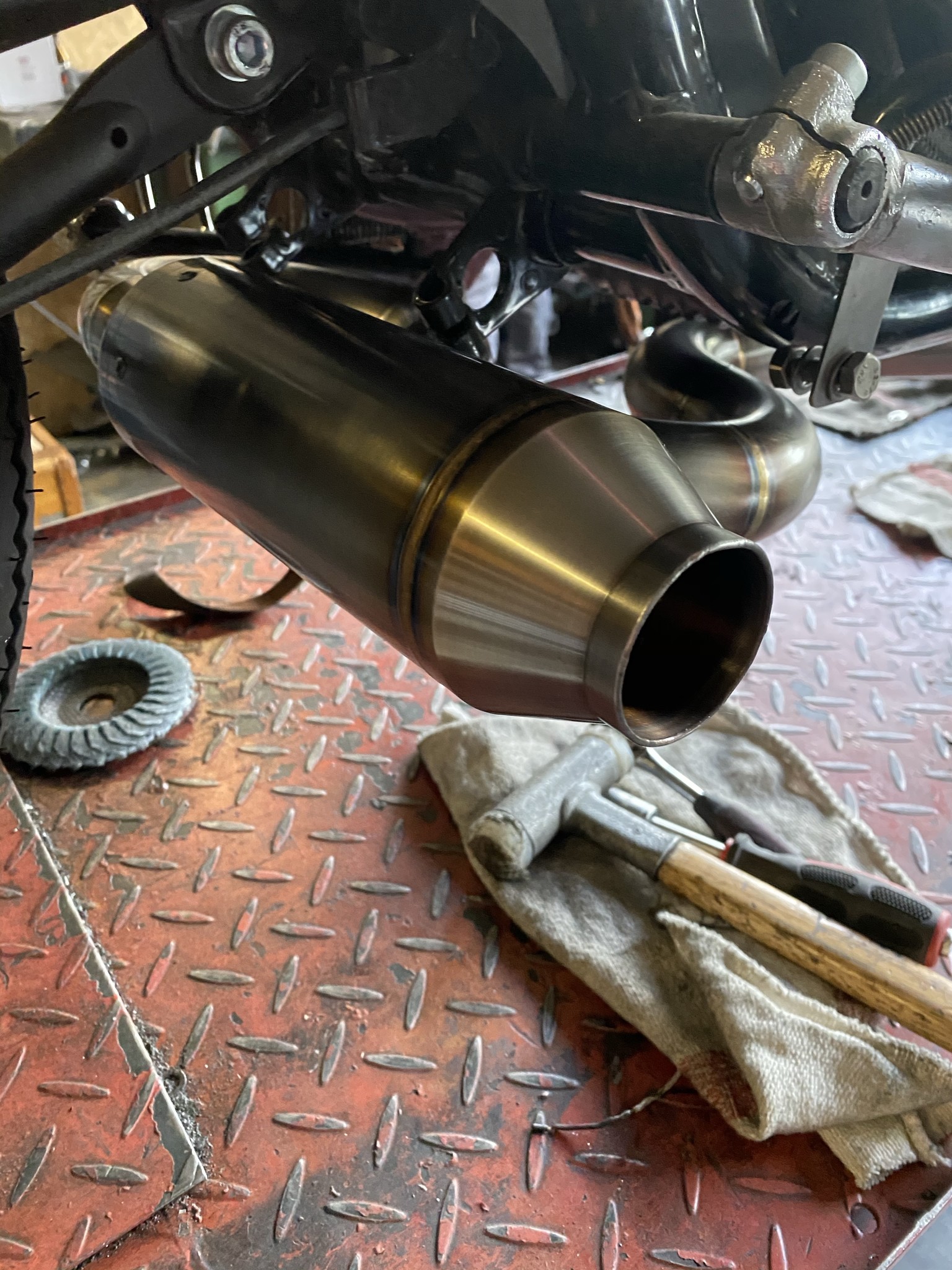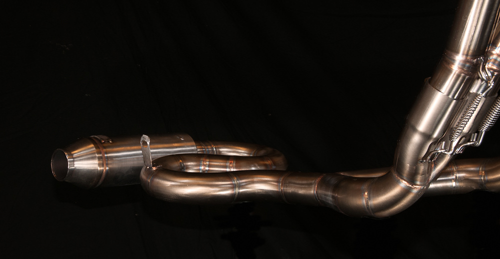 The exhausts are made from stainless steel. The tubes have a diameter of 45mm and the silencer fits onto a 44,5 or 38mm flange depending on the muffler you would like to order. The exhaust will be delivered with a “race only’’ silencer.