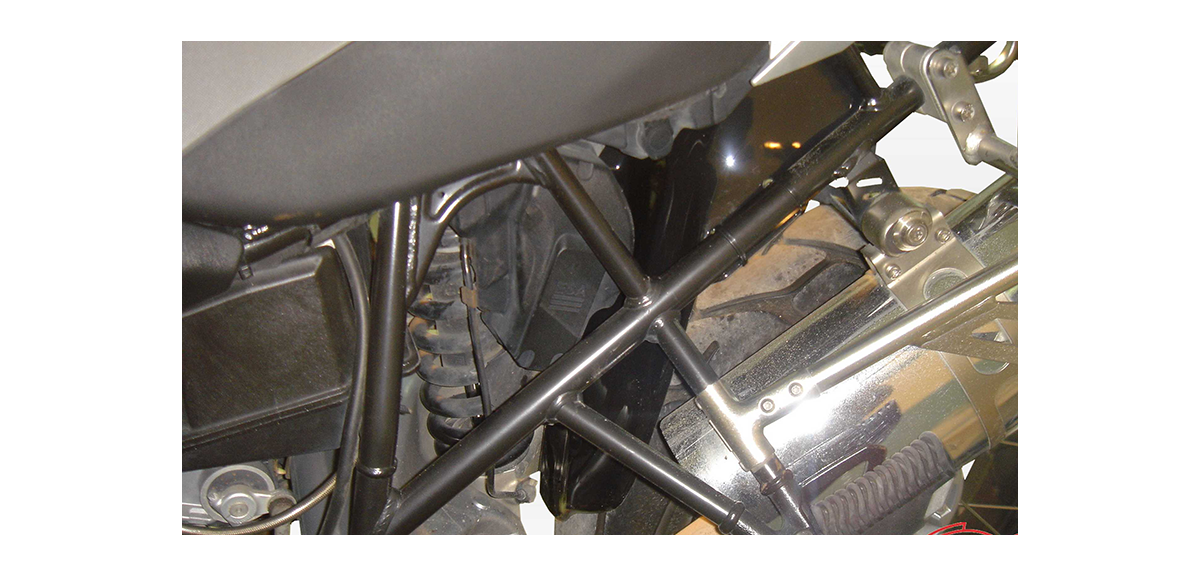 Rear Hugger for BMW R1200GS. Protects the rear shock absorber from mud and also protects the driver's and passenger's feet from water.