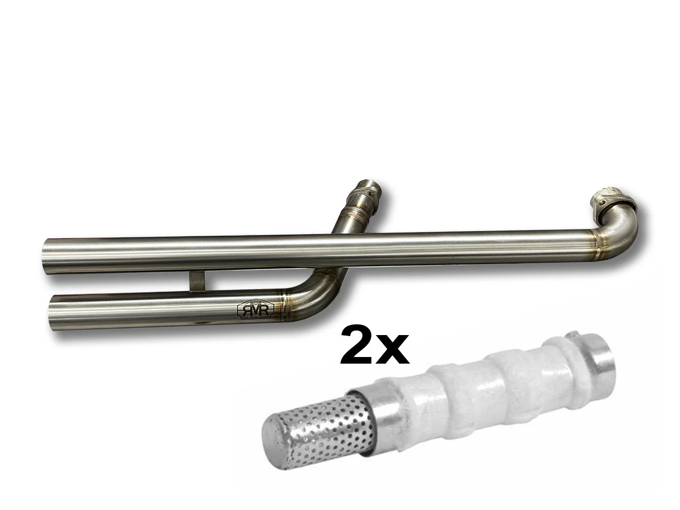 Lo scarico è realizzato interamente in tubo di acciaio inossidabile da 1,5 mm con un diametro esterno di 44,5 mm.
