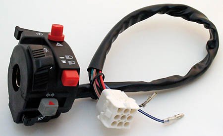 Handlebar switch, Honda-style, left. Function: lights on/off, high/low, parking light, horn, indicator, starter, hazard switch function even without ignition on.