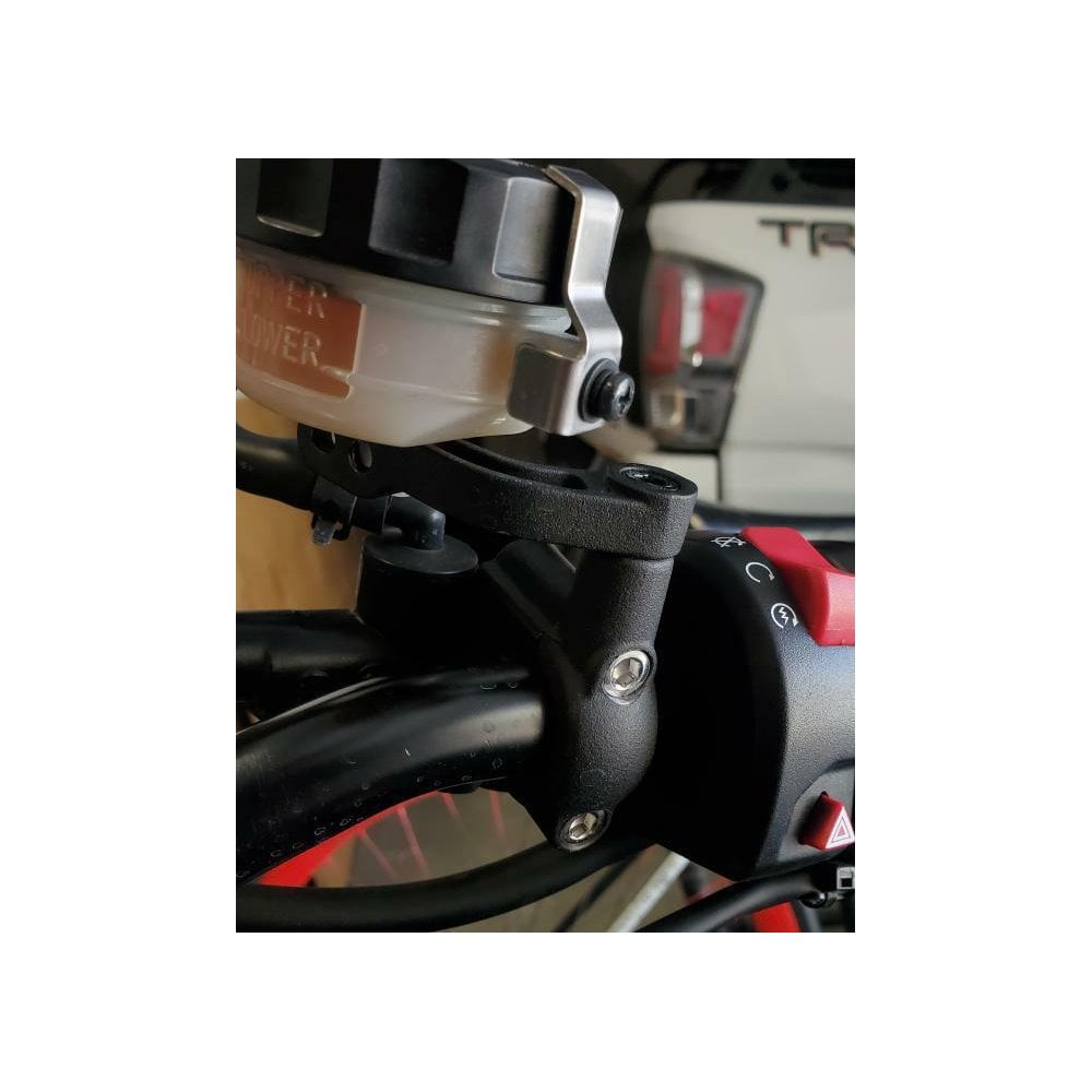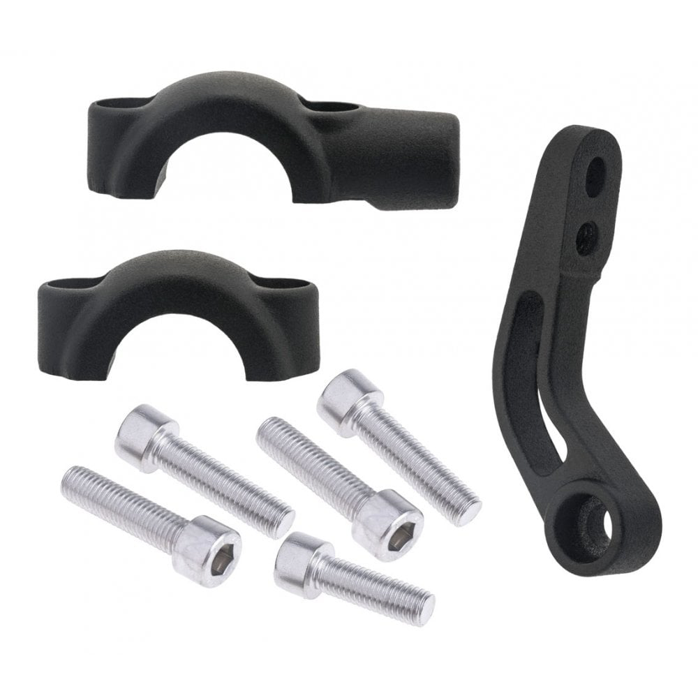 Questo kit Motone per l'eliminazione degli specchietti consente di mantenere un manubrio ordinato quando si montano gli specchietti bar end, senza antiestetiche filettature da tappare e con un braccio più elegante che trattiene l'olio del freno.