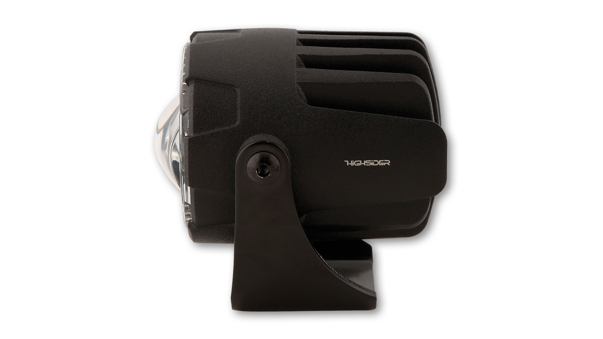 HIGHSIDER FT13-FOG è un fendinebbia ad alte prestazioni in un alloggiamento in alluminio nero opaco con una lente rotonda.
