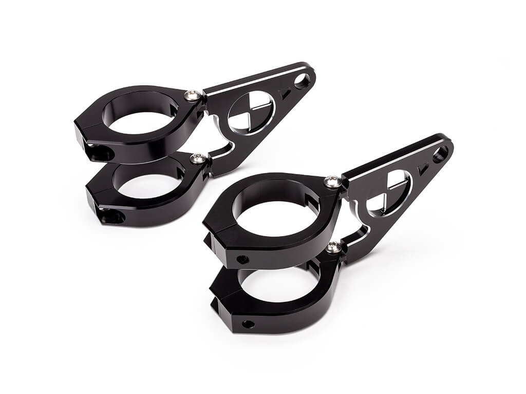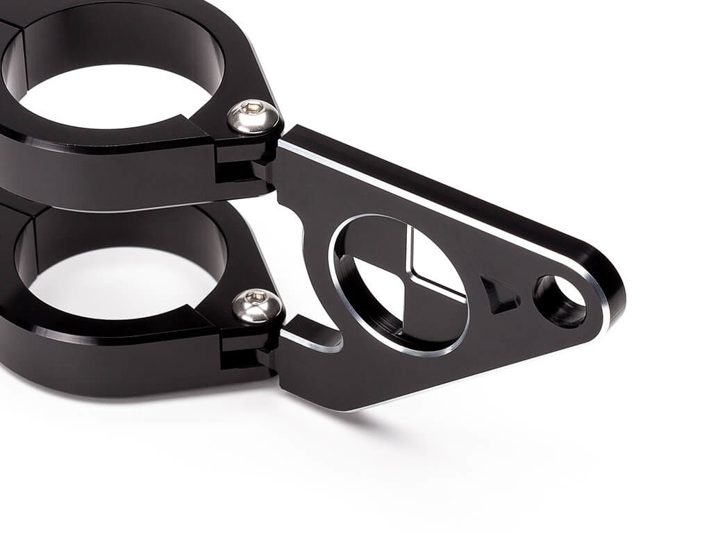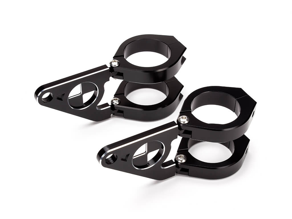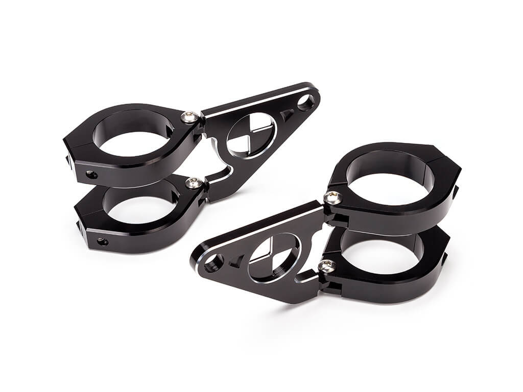 These high-quality contrast-cut headlight brackets are made from machined T6061 aluminium and have adjustable arms, which allow for different width headlights.