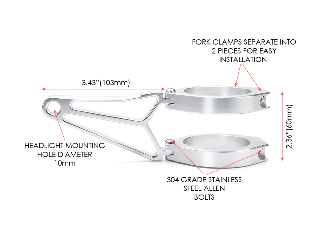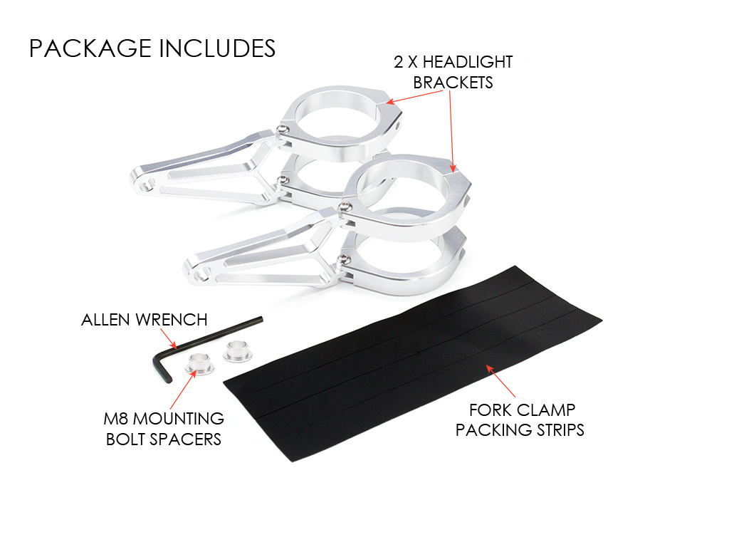 • Comprehensive kit to relocate your headlight - No need to remove the forks to make them fit