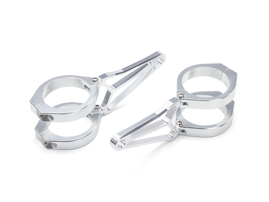 This is a very high-quality and really attractive pair of CNC machined headlight brackets that incorporate fork clamps. They are specifically designed for those who want to customise their front end and are on a budget but want high-quality products.