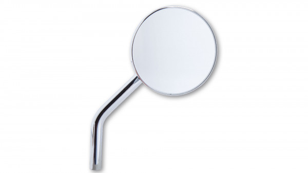 Chrome, round and adjustable mirror. Suitable right-hand and left-hand side.
