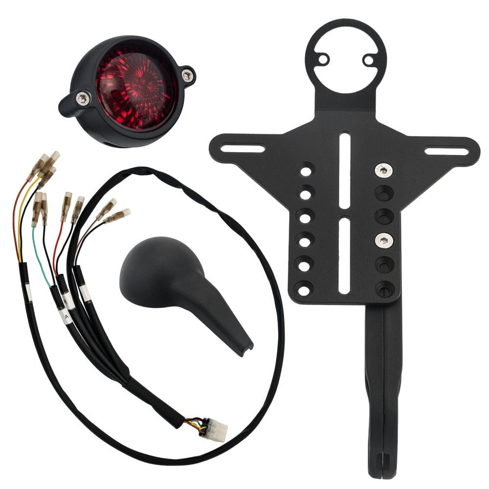 Un nuovissimo kit per applicare la targa della moto sul lato è il Motone Sidewinder Eldorado Black - Side Mount License Plate Kit. Il kit comprende il fanale posteriore Motone Eldorado con kit di montaggio sul parafango che funziona come luce di marcia, luce del freno e illuminazione della targa e un adattatore Plug and Play Loom esteso. L'adattatore del telaio è realizzato per funzionare con indicatori di direzione aftermarket o Motone, che terminano con un connettore a proiettile da 3,9 mm.