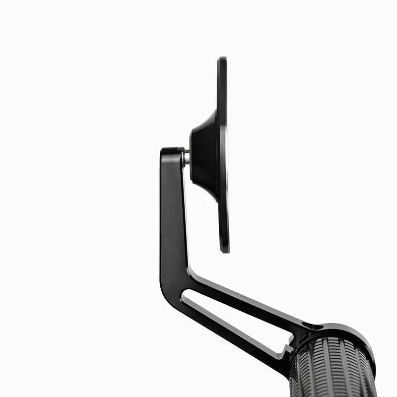 Il braccio piccolo è orientabile. Lo specchio è adatto sia per il lato destro che per quello sinistro. Può essere montato direttamente sull'estremità del manubrio (22 mm e 1 pollice) o, se le manopole e gli attacchi non possono essere spostati, utilizzando l'adattatore per manubrio mo.view.