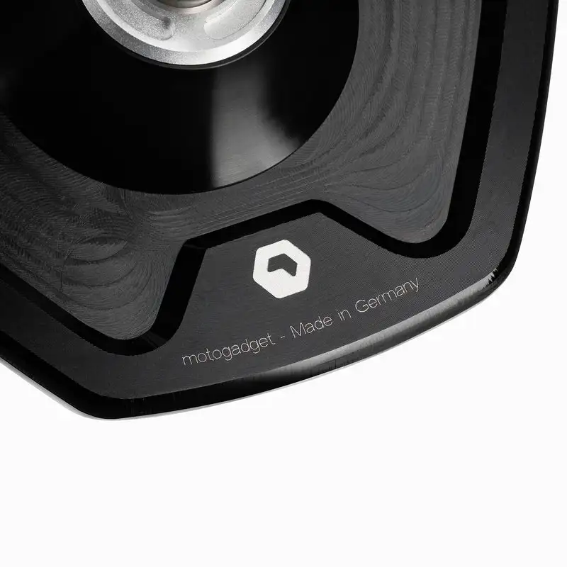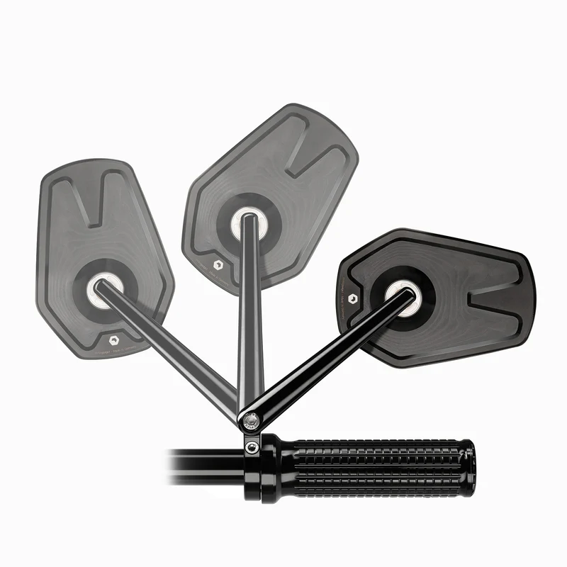 Lo specchietto retrovisore aggiuntivo può essere montato sopra o sotto il manubrio. Il braccio è orientabile e si blocca in posizione a intervalli di 45°. Lo specchietto è adatto per il lato destro e sinistro. Si monta sul manubrio, a seconda della versione, per manubri con diametro di 7/8" o 1". Per il montaggio è necessaria una superficie libera del manubrio di 10 mm di larghezza, senza dover apportare modifiche al manubrio o agli accessori.