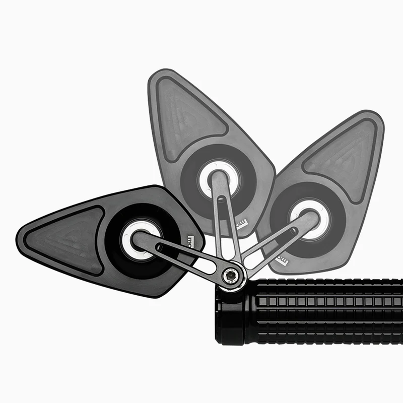 Il corpo dello specchio, il braccio dello specchio e il morsetto per l'estremità del manubrio sono fresati da alluminio pieno su