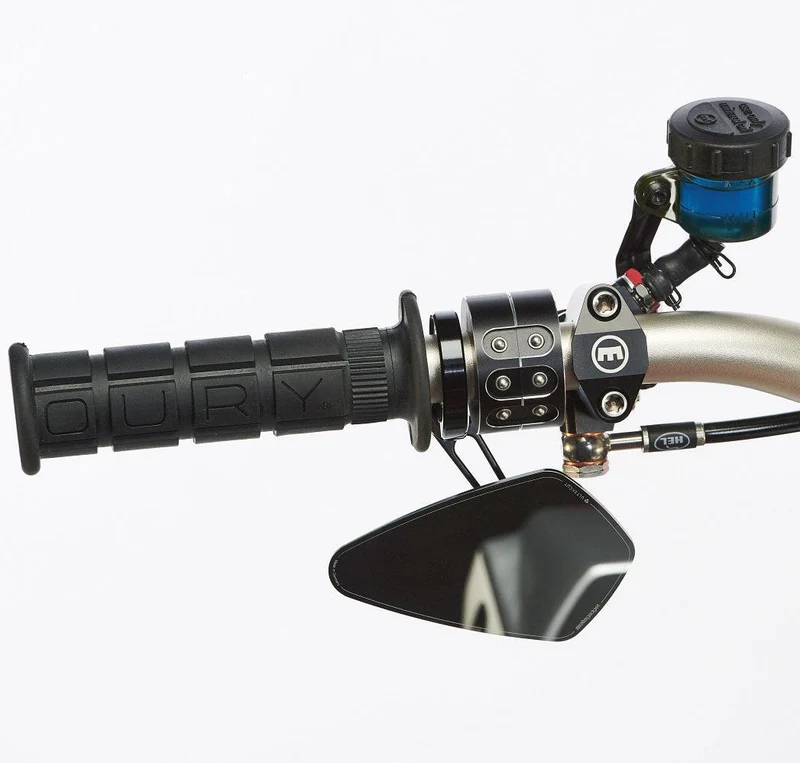 Lo specchietto può essere montato sopra o sotto il manubrio ed è adatto sia per il lato destro che per quello sinistro. Si monta direttamente sull'estremità del manubrio (22 mm e 1 pollice) oppure, se le manopole e gli attacchi non possono essere spostati, utilizzando un adattatore per manubrio mo.view.