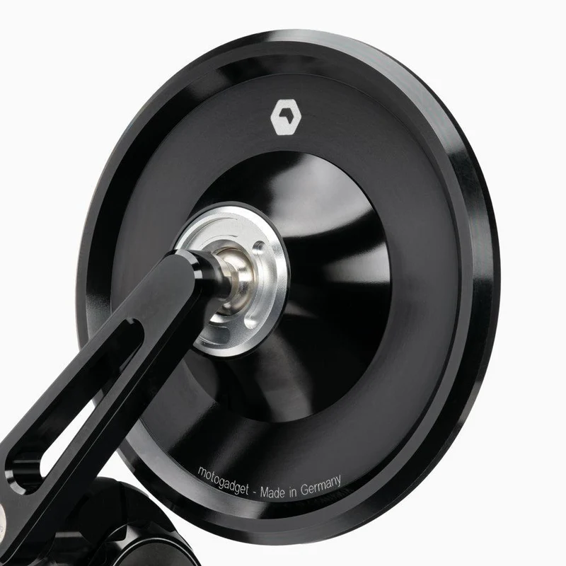 Il corpo dello specchio, il braccio dello specchio e il morsetto per l'estremità del manubrio sono fresati da alluminio pieno su