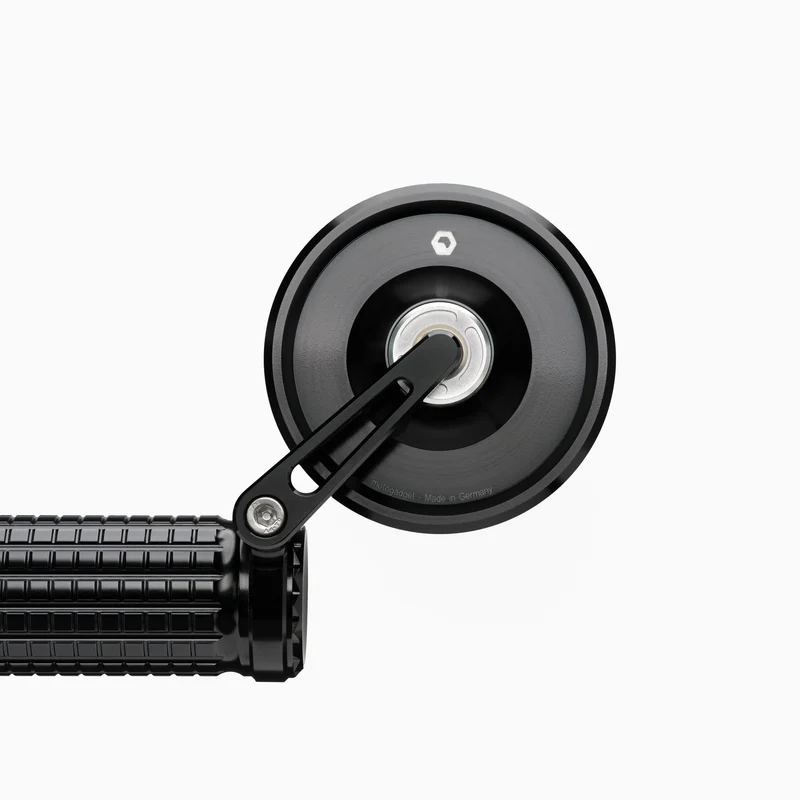 Lo specchietto può essere montato sopra o sotto il manubrio ed è adatto sia per il lato destro che per quello sinistro. Si monta direttamente sull'estremità del manubrio (22 mm e 1 pollice) oppure, se le manopole e i raccordi non possono essere spostati, utilizzando un adattatore per manubrio mo.view.