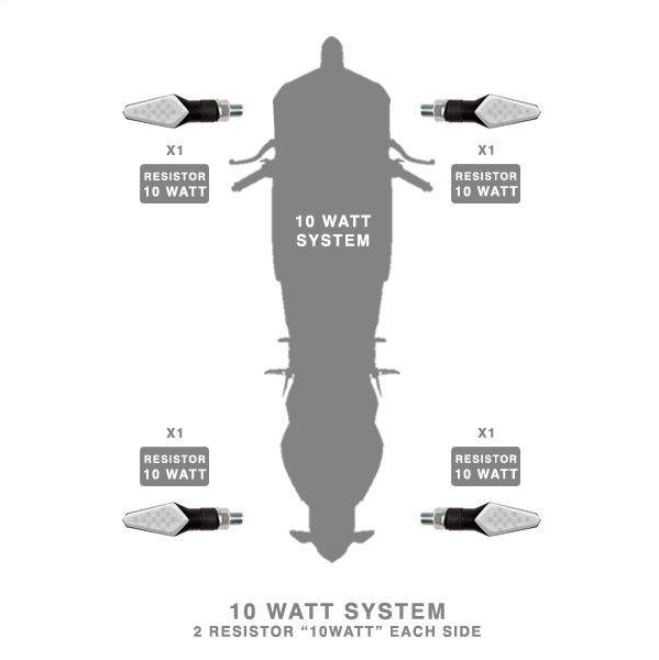- Su una moto con impianto da 10 watt, il Resistor 10 Watt (cod. RES10) è un componente elettronico fondamentale per il corretto lampeggio delle frecce a led Barracuda.