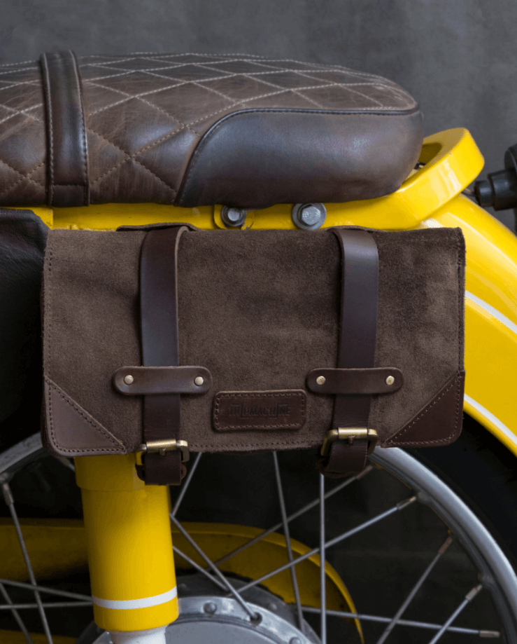 It can easily be mounted to the motorcycle so you don't need to pack it in a bag. The special water-resistant suede ensures that weather will have little effect on the bag. Here's what it contains :