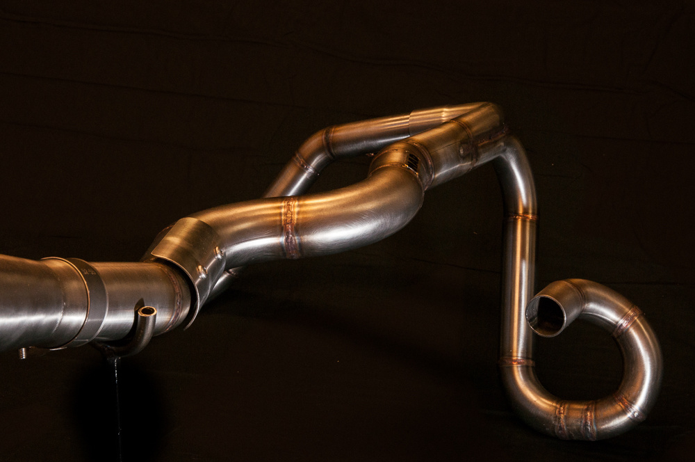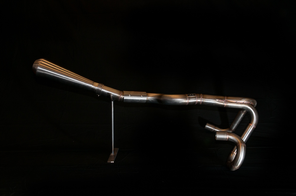 Tutti gli scarichi sono realizzati in acciaio inossidabile di alta qualità. I tubi hanno un diametro di 40 mm e la marmitta si inserisce su una flangia da 50 mm. Su richiesta può essere fornito anche con tubo da 38 mm. Lo scarico verrà consegnato senza silenziatore.