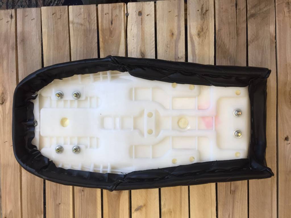 The seats are made of PU (Skai) leather because this material has a higher resistance to rain and sunlight. As you might have noticed, it also makes the seat more affordable. The quality is superb and it does complete every Brat motorcycle!