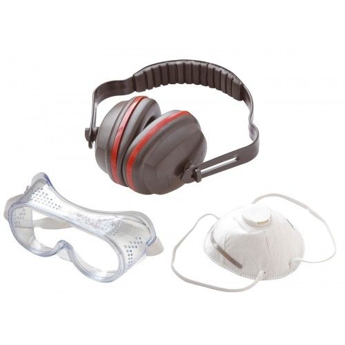 Dust mask (EN149), earmuffs (EN352) and safety glasses (EN166).
