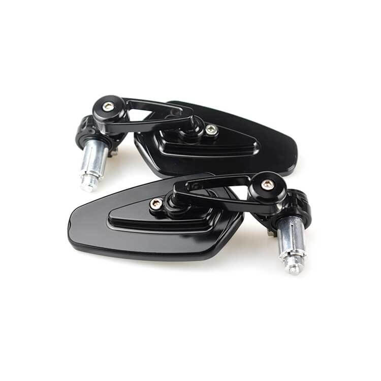 Set Specchietti Bar End Moderni Neri. Alluminio 6061 di qualità e si adatta a manubri da 22 mm. Puoi bloccare gli specchietti sulle tue barre, così come nelle tue barre con gli accessori inclusi. Ecco perché funzionano anche con manubri da 1"! Insomma, il set di specchietti ideale e multiregolabile per ogni moto.