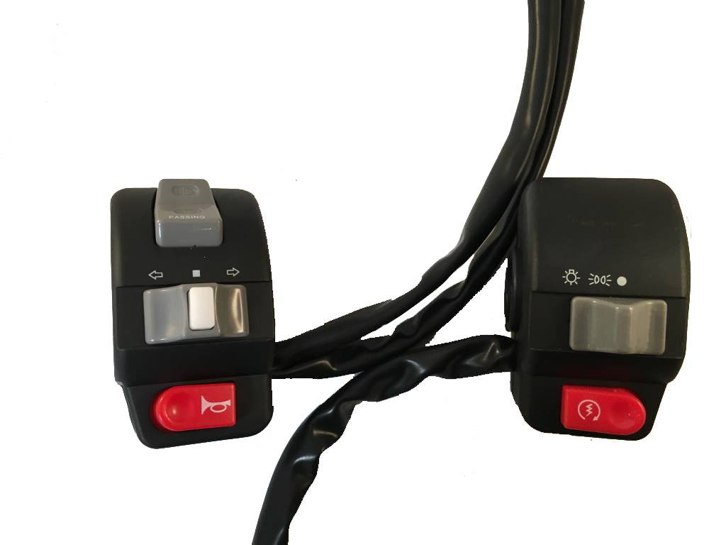 Set interruttori manubrio sinistro e destro 22 mm. Universale da usare e ideale per la tua Cafe Racer! L'alloggiamento è in alluminio e il set si incastra perfettamente. Si adatta a un manubrio da 22 mm.